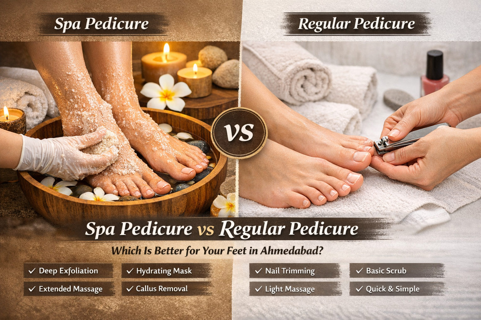 If you’ve ever searched for manicure in Vastrapur, pedicure near Thaltej, or the best pedicure in Ahmedabad, you’ve probably come across two popular options: